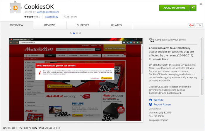 We now have a broken web. Thanks to our bureaucrats in Europe we have developed an involuntary instinct to ignore entirely, tick and click the infamous cookie law notices without reading one single word of what’s in there. It’s gotten so bad that some ad blockers are now classifying the well-intended cookie notices as spam, trash content. Chrome extensions to auto-close the cookie banners are trending too. To make things worse, the banners appear to us in a wide variety of forms, sometimes breaking an otherwise good design and challenging our patience, not to mention overloading the website with more objects.