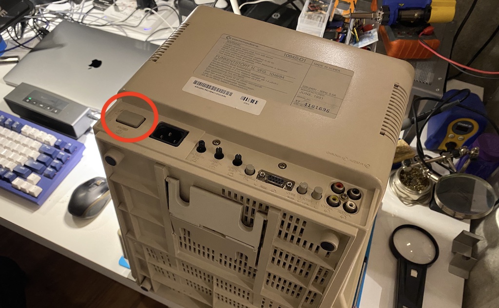One last thing. The Commodore 1084(S) and some Philips monitors used a special power switch that was famous for failing after some use. At some point in time, they would stop holding their position when clicked in for powering on. A bit of duct tape around the button would quickly solve the problem, but it’d still be annoying to use the mains cable to turn the monitor on and off.