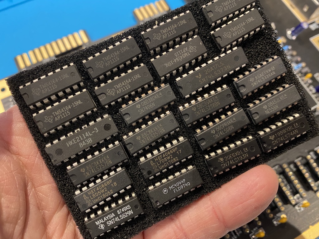 Some chips are regular 74(LS) TTL logic that you can buy brand new, but the others aren’t manufactured anymore. Here’s the list of the original old chips I will be using: