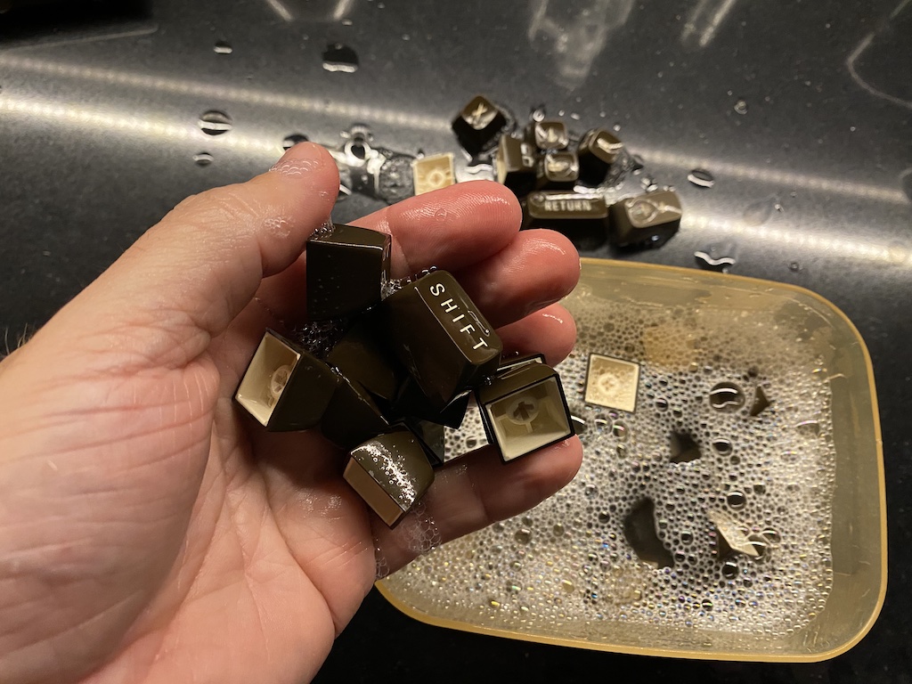 I washed the keys with soap and warm water and rinsed them a few times until all the dirt came off, and then I had them dried with a hair drier.