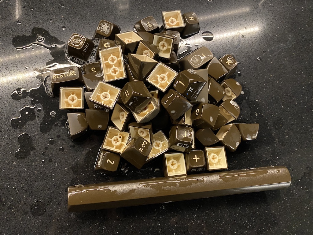 I started taking the keycaps out. It’s an easy process if you use a keycap puller tool (or two zip ties if you don’t have the tool.)