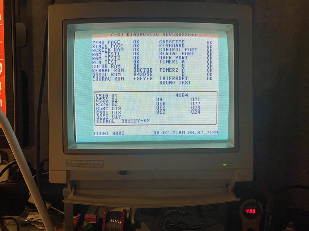 I couldn’t believe it. I plugged my Versa64Cart-based diagnostic test cartridge into the expansion port and ran the test; it gave me a 100% working C64 without issues.