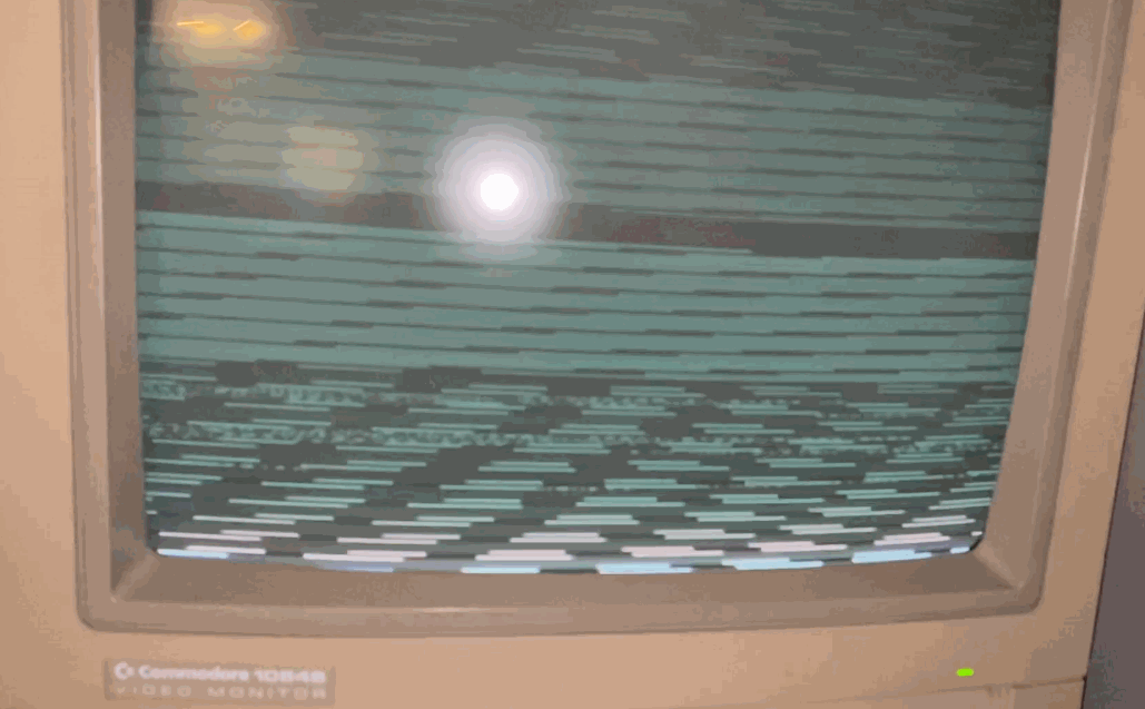 The bad news: the 1084 isn’t showing the signature C64 BASIC boot screen as it should. Or at least it can’t pick up and synchronize the video signal.