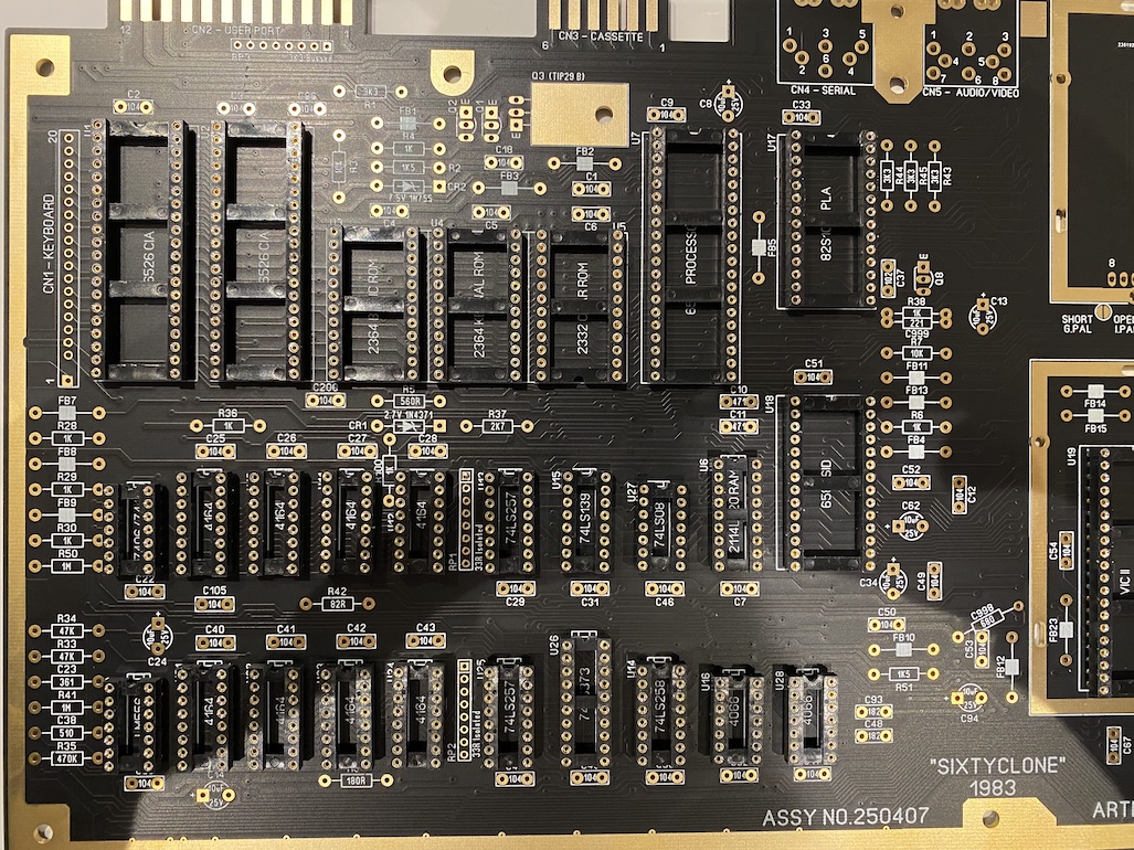 I first bought a brand new beautiful SixtyClone replica PCB in Bob’s Bits Tindie shop. The C64s went through a few PCB revisions making them more reliable and cheaper to produce over time. I ended up choosing the first, most famous one: the Assy 250407 Rev. C. Black soldermask because it’s just gorgeous.