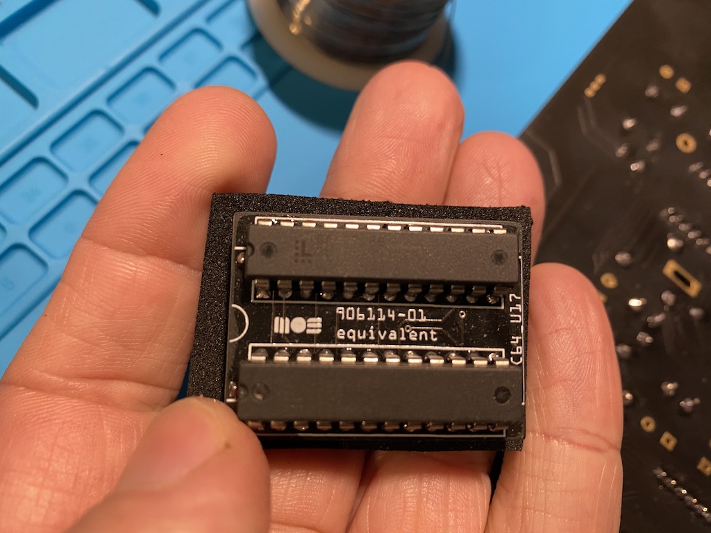 PLAs are very sensitive and one of the first chips to go when things age and fail. Fortunately, Thomas ’skoe’ Giesel literally dissected the C64 PLA and reverse-engineered it in 2012 and opened doors to a few modern drop-in alternatives that you can use. I chose the PLA20V8, which uses two programmable logic chips from Lattice Semiconductor, also known as GAL chips. You can either build your own or buy one pre-assembled on eBay.