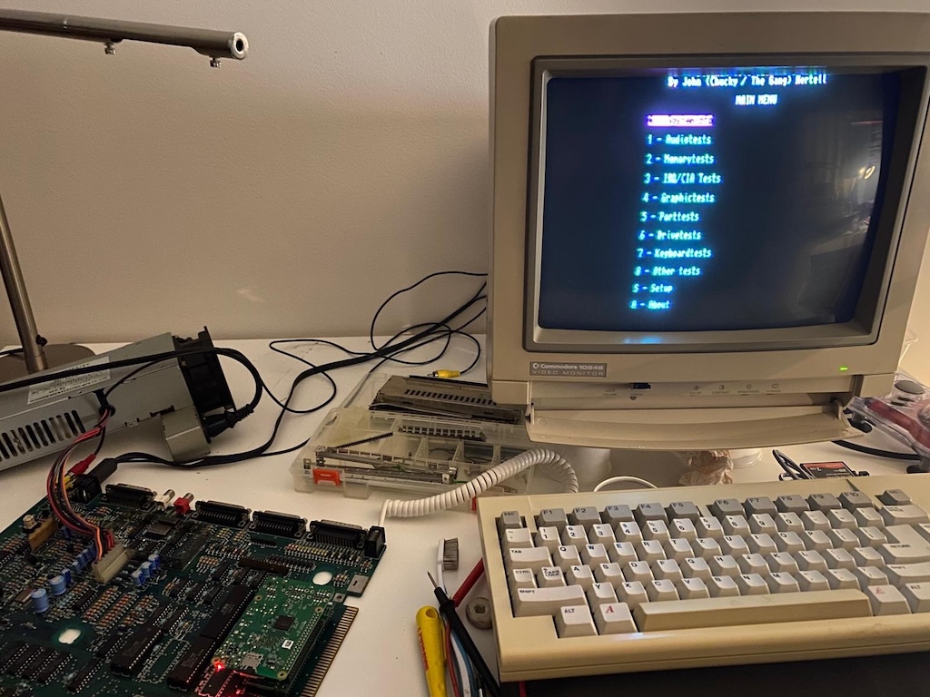 When the Parceiro arrived, I was still in the middle of troubleshooting why my Amiga 1000 wasn’t booting, and plugging in the Parceiro didn’t change its condition. What changed, though, was that David is incredible, has a fantastic knowledge of the Amiga electronics, and started helping me fix mine. We exchanged over 20 emails back and forth, sometimes more than one a day. David would send me highly detailed instructions on what to try, what to measure with the oscilloscope, what to replace, manuals, schematics, and so on. He was incredibly patient and helpful, beyond what I’d expected, and I’m very grateful for that.