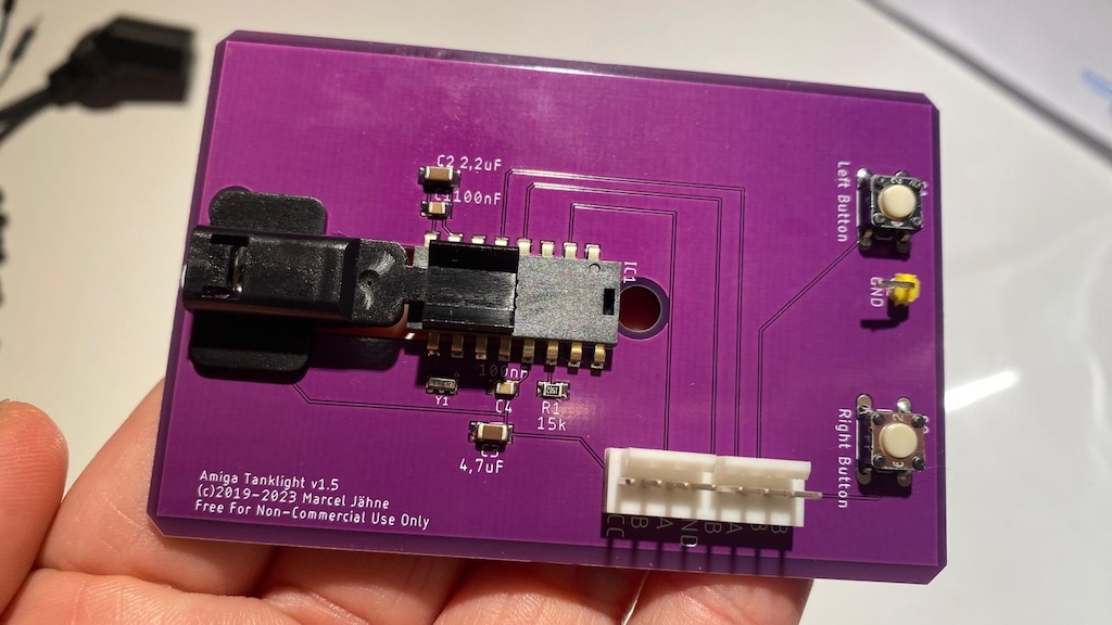 I also have this Laser-Tank-Mouse PCB that replaces the internal PCB, mechanics, and ball of the old iconic Amiga tank mouse with a modern optical version.