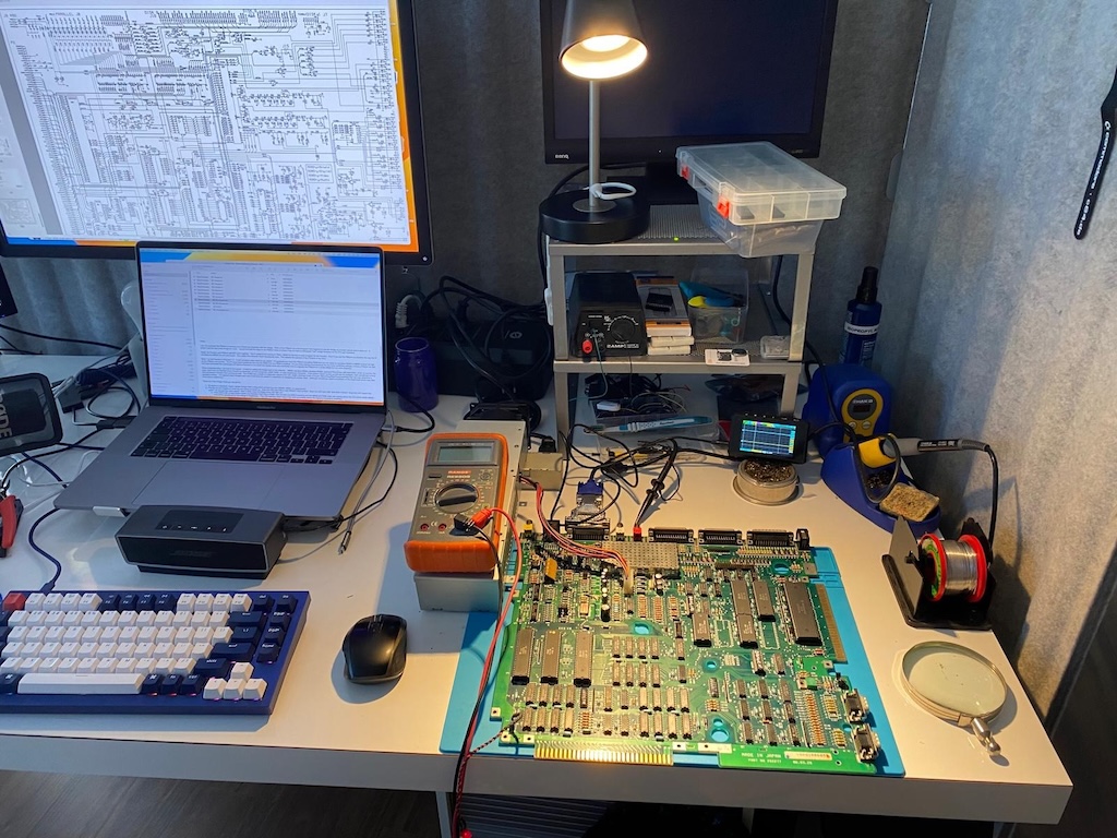 I grab the oscilloscope and multimeter and start testing the signals. The great thing about computers from this era is that they all provided schematics and service manuals. The power rails are good, the PSU sends the correct voltages, and the clock signal is there. It’s not that.