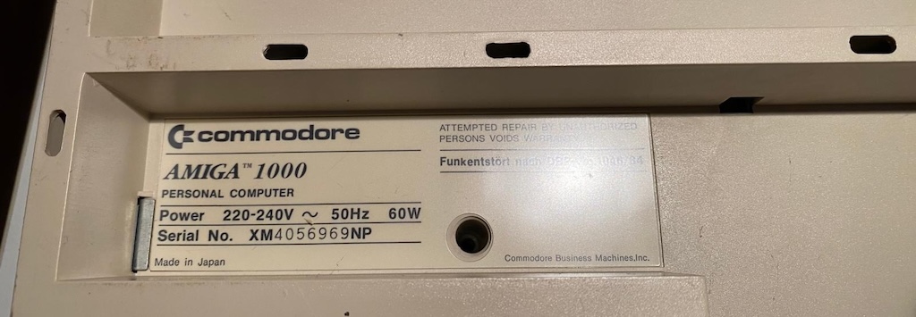 My model is a PAL Amiga 1000 with the serial number XM4056969NP, made in Japan. This level of detail may seem irrelevant, but it’s not. The Amiga 1000 has a few variants and revisions; funny enough, their differences are important to retro-enthusiasts today. I’ll explain.