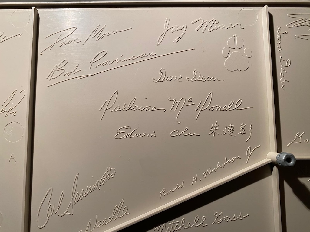 That’s Jay Miner’s signature on top right corner, considered the father of the Amiga, and Mitchy’s, his dog’s, paw.