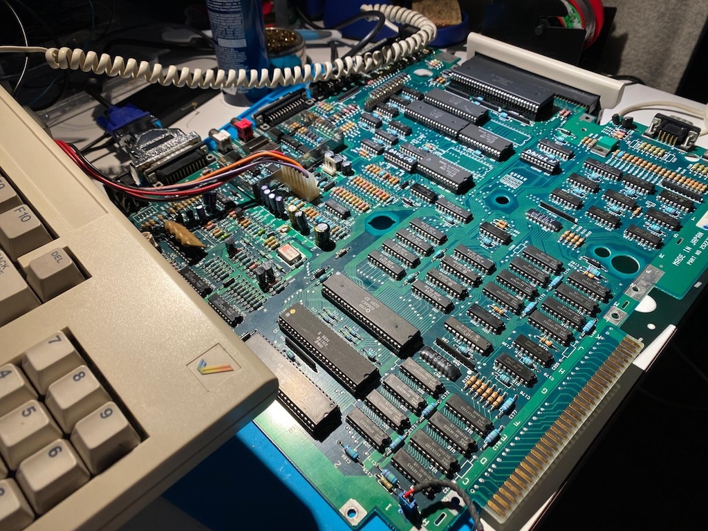 When the Parceiro arrived, I was still in the middle of troubleshooting why my Amiga 1000 wasn’t booting, and plugging in the Parceiro didn’t change its condition. What changed, though, was that David is incredible, has a fantastic knowledge of the Amiga electronics, and started helping me fix mine. We exchanged over 20 emails back and forth, sometimes more than one a day. David would send me highly detailed instructions on what to try, what to measure with the oscilloscope, what to replace, manuals, schematics, and so on. He was incredibly patient and helpful, beyond what I’d expected, and I’m very grateful for that.