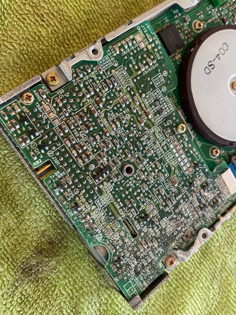At this point, I don’t really need a floppy drive, but it’d be nice to have one anyway. The drive fits right above the battery, and so, as expected, it got heavily affected by corrosion. Furthermore, the motor is making a clunky noise when it spins. I cleaned everything I could, did some basic conductivity tests, but couldn’t get it to work. Mechanical issues aren’t my specialty, so I think I need a replacement drive.