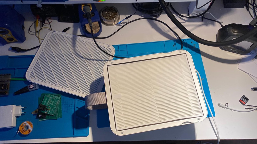 The Ikea UPPÅTVIND is a pretty decent, really cheap 35€ air purifier that uses a standard EPA (Efficient Particulate Air) 12 filter and has a 3-speed fan that is relatively silent. Putting it on the table alone when you’re soldering, if you have the space, does a great job of extracting the fumes, but I want something more space-efficient and flexible.